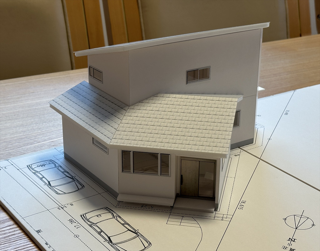 南側は高台であるものの住宅街のため隣家が近い。よくある四角の家にしてしまうと、